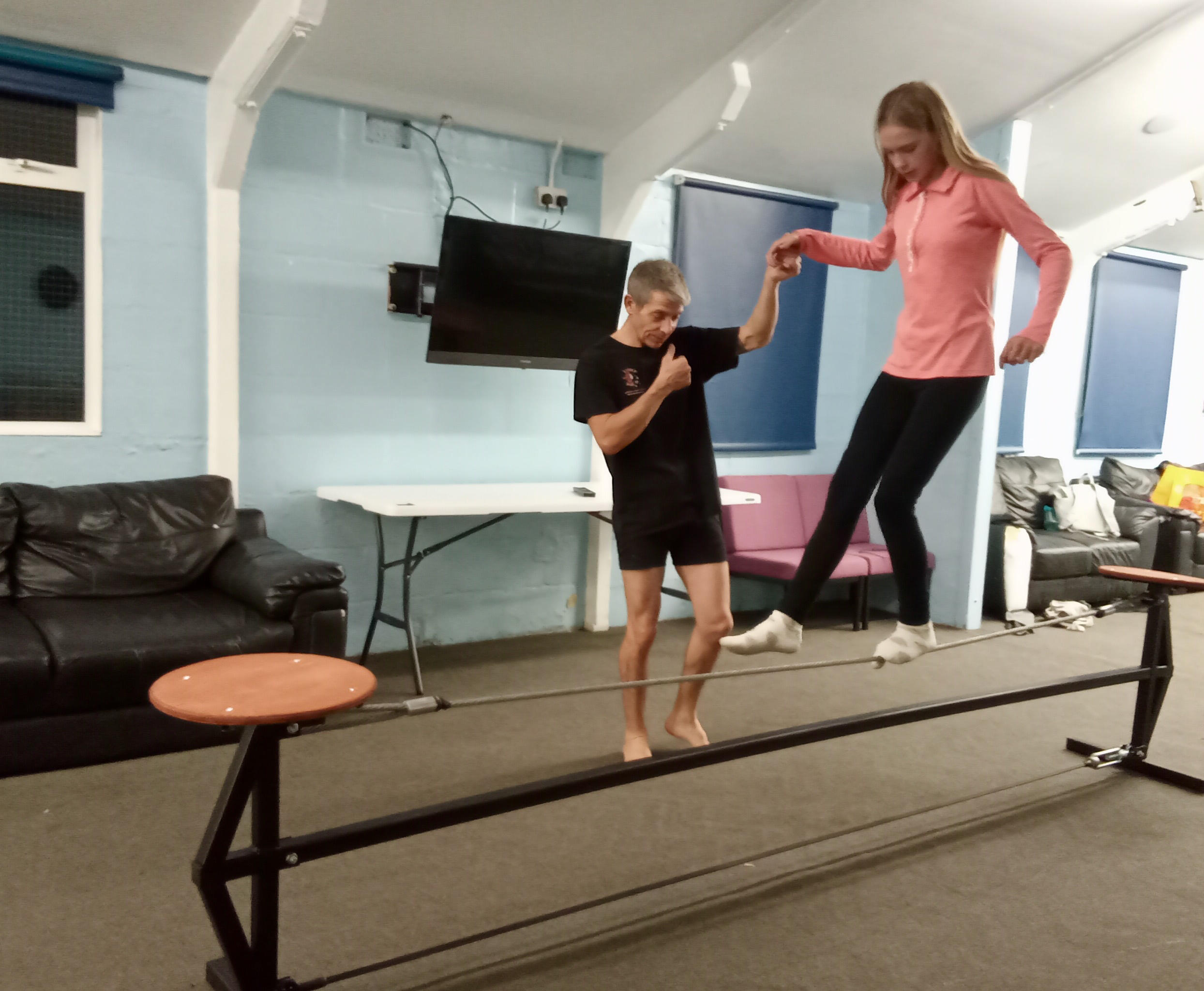 With funding from Voluntary Support North Surrey (VSNS), we delivered a circus arts project at Ashford Youth Centre targeting hard-to-reach young people, especially those in Year 9 and above. Over four weeks in October 2025, we held four workshops focusing on aerial acrobatics and tight wire walking. Despite the challenges of engaging this demographic, the project successfully involved a total of 10 young people in the workshops, with an additional 7 attending introductory taster sessions, demonstrating effective outreach and participation in a typically difficult environment.The Youth Club coordinator told us he was really impressed by the level of engagement and commitment by some of the participants who rarely involve themselves with the club's activities. During our workshops, he saw incredible improvements in their attention span and focus.'Given the short length of this workshop series, which we see as a pilot, we noticed clear improvements in the behaviour of regular attendees. This progress showed not just in how they interacted with tutors and activities but also in how they worked together and supported each other, boosting trust and teamwork overall. What worked especially well was working almost one-to-one with the most challenging participants. This had a bigger impact than trying to engage a larger group, proving that quality matters more than quantity when working with vulnerable young people.We can confirm the value of this kind of activity in underserved communities by seeing significant gains in attention span, commitment, physical coordination, emotional control, and social skills in a short time.